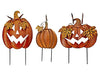 - Set of 3, beautiful rustic decorative metal pumpkin yard stakes with a rich orange crackle finish accented with burnished golden leaves.