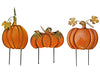 - Set of 3, beautiful rustic decorative metal pumpkin yard stakes with a rich orange crackle finish accented with burnished golden leaves.
